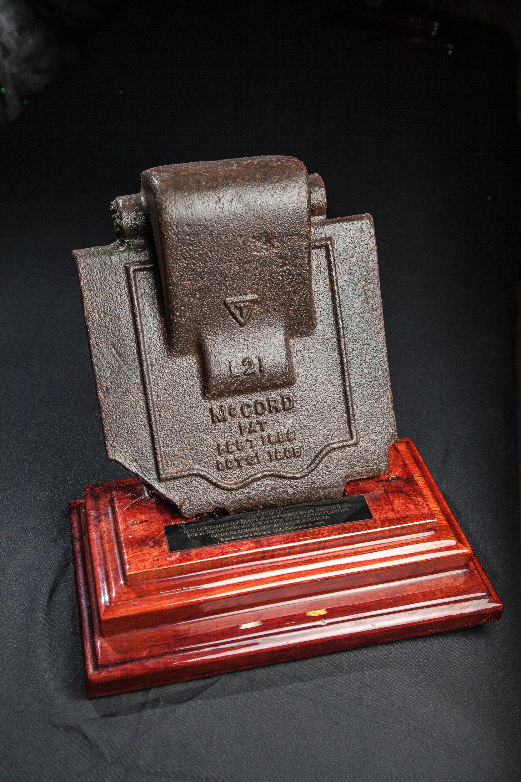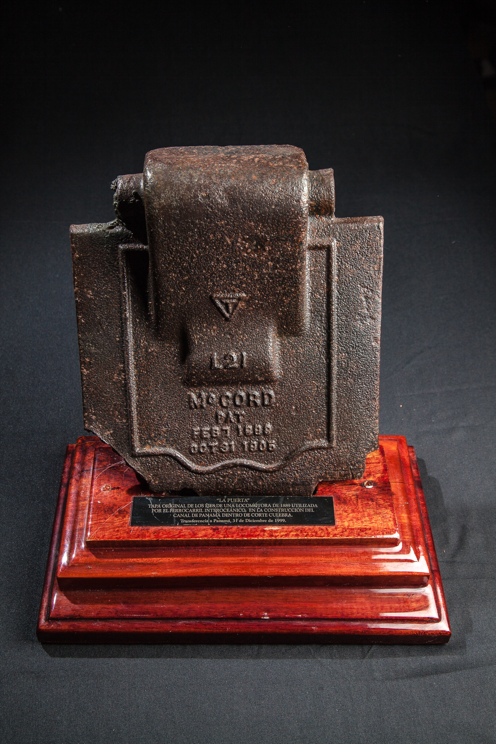 Tapa de las ruedas del ferrocarril de trabajo utilizado en la construcción de las esclusas de miraflores en el canal de panamá (fecha marcada 1909).